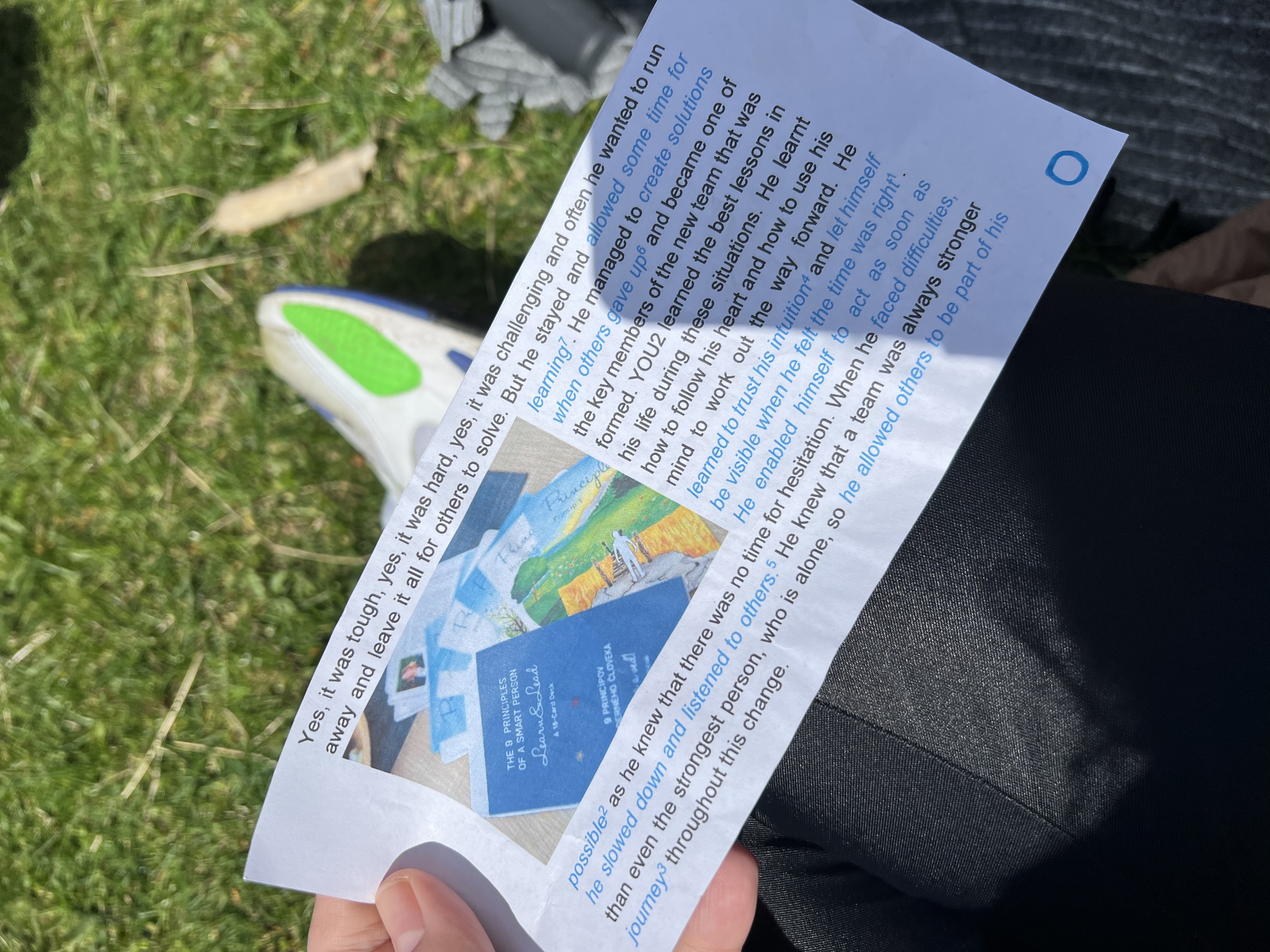 Už je na mieste podotknúť a pripomenúť, že celý turistický prechod a konverzácie medzi účastníkmi prebiehali v anglickom jazyku. Hlavné postavy boli zakomponované do príbehov „zo života“ s pohľadom na život im vlastným, s prístupom k sebe samému, jednoducho povedané, YOU2 ako človek optimista a NOTYOU ako jeho protipól. Ak hovoríme o príbehoch, s postavami sa človek doslova stotožní v určitých situáciách. Autorkou predlohy príbehov 9 princípov moderného človeka Learn & Lead je Janka Chynoradská, riaditeľka Harmony Academy a vedúca celej výpravy, ktorú pri tvorbe doplnili Soňa Petrášová a Vicki Plant. Všetky podnety a námety k príbehom čerpali naozaj „zo života“. Práve Janka so Soňou boli prítomné na našom pilotnom podujatí a boli nápomocné pri analýze dvoch príbehov ostatným účastníkom celej akcie. Keby ste sa po celej akcii opýtali na najzaujímavejšie momenty z podujatia najmladších účastníkov, s maximálnou presnosťou by vám charakterizovali oboch pánov YOU2 a NOTYOU a ku každému by priradili s ľahkosťou aj 9 princípov moderného človeka s myšlienkou „uč sa a veď“ / „Learn&Lead“. Nejde však len o 9 princípov, ale aj o tzv. „anti princípy“, ktoré nám niekedy v živote dokážu priam dokonale skrížiť cestu, ale s dávkou rozumu a srdca je človek schopný nastúpiť na vlak k spokojnejšiemu a šťastnejšiemu životu.